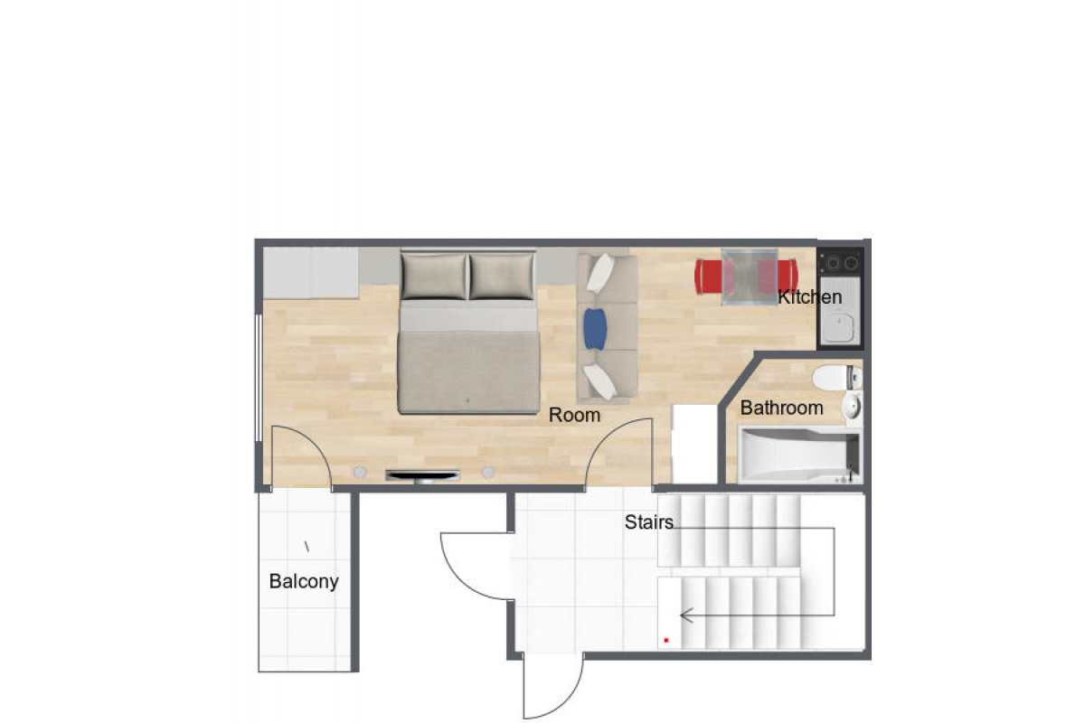Apartment A is located on the first floor. This is a studio apartment for 2+1, bathroom, kitchen, satellite TV, air conditioning and a balcony.